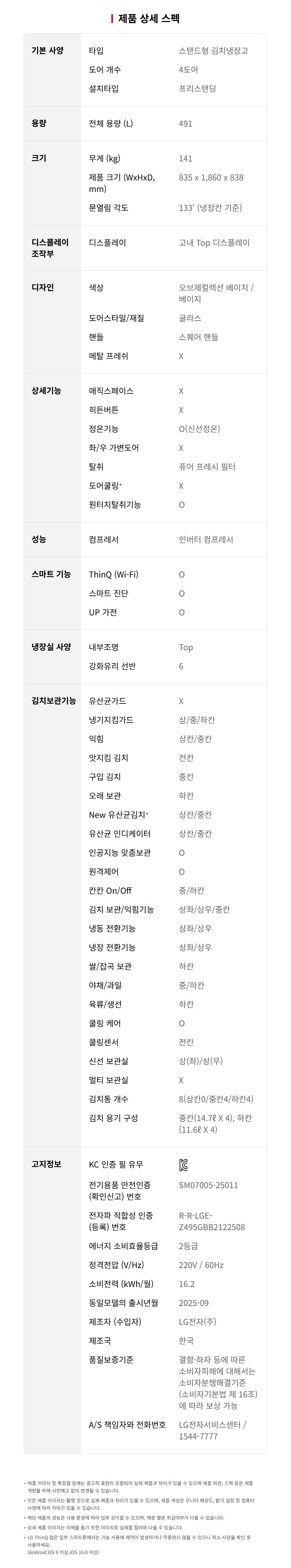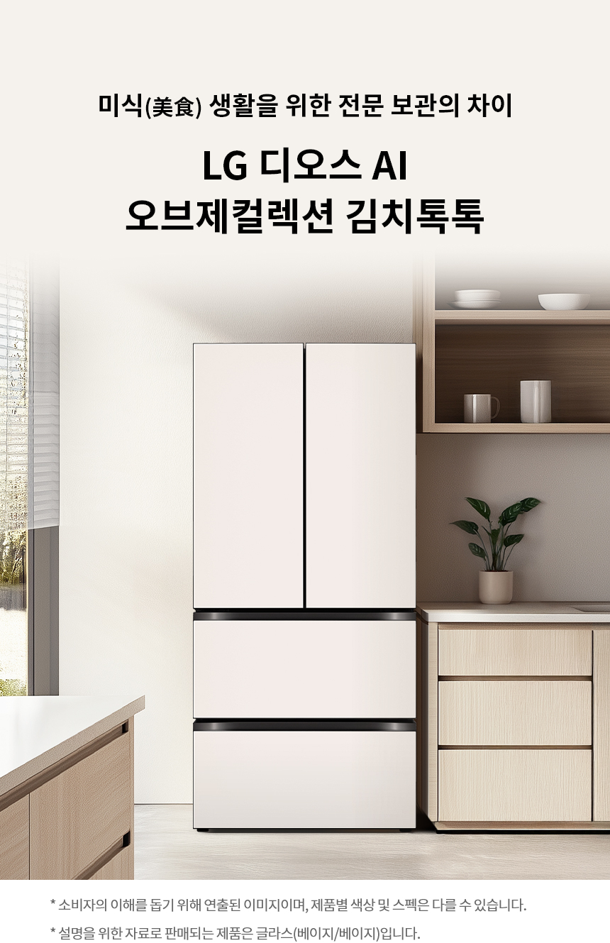 [가전구독/렌탈] LG 디오스 AI 오브제컬렉션 김치톡톡 Z495GBB212(491L/베이지)